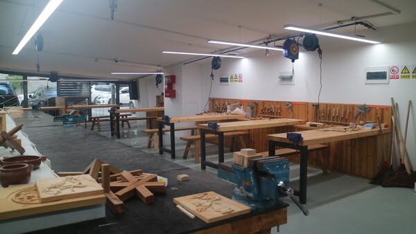 以木材类加工为主要功能,包含综合工作间和储物室。提供大、中、小型木材类作品加工制作所需的设备和工具,可制作与木材相关艺术与设计类作品。传统木工实验室配备了各种传统木工工具,如手锯、手刨、凿子、冲、划线器等,以及电动木工加工设备,如带锯、台锯、曲线锯等。同时,一些实验室还配备了大型设备,如多功能开榫机、双面压刨机、木工车床等。围绕木材辨识、手工工具使用与制材工艺三大核心展开。木材辨识课程帮助学生掌握不同木材的特性,为设计选材奠定基础;手工工具使用课程则强调基础技能的训练;制材工艺课程则融合理论与实践,让学生体验从构思到成品的完整流程。旨在培养学生的实践能力和创作水平,增强学生的艺术创作和动手能力。同时,实验室也鼓励学生跨学科合作,推动传统木工技艺与现代设计理念的融合。传统木工实验室不仅服务于木工制作相关课程,还为建筑学、工业设计、艺术设计等专业方向的教学与科研提供支持。一些高校的传统木工实验室还作为创客空间和社团运营场所,为学生提供更多元的创作空间和实践机会。