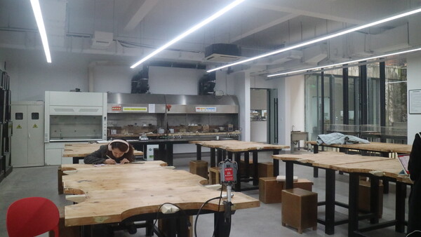 漆艺实验室于2019年正式启用,隶属于手工艺术学院工艺美术系,位于中国美术学院象山校区9号楼101和213,实验室占地面积约490平方,分为漆艺髹涂室、上涂室、下中涂室、糙漆区、水磨区、干磨区、上金区、手工木作区、机械木作区。漆艺实验室助力为学生提供相对清洁可控的漆艺实验环境以及相应的干燥条件。从传统的天然漆髹涂与干燥技术出发,强调天然漆材料的语言的独特表现力。侧重于学生对漆材料上手的实践体验,材料语言的深度与广度多元可能性探索。承接漆艺专业所有课程,学生在实验课程中展开对于传统天然漆髹涂技艺的实践活动。漆艺髹涂实验室因教学及科研需求,配有实验操作台、荫房、高温烘干烤箱、自动恒温恒湿荫箱等设备。